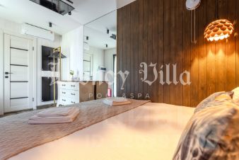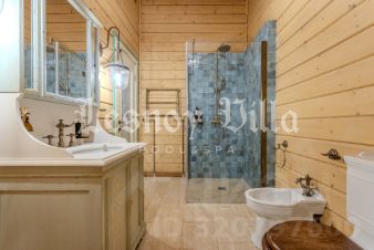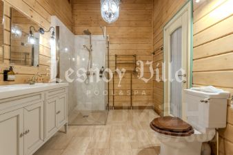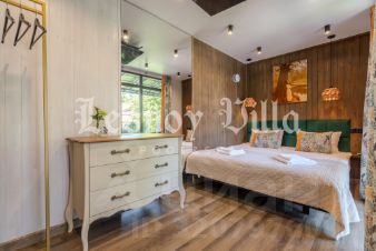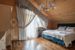 Двухэтажный премиум коттедж (загородный дом) с шестью спальнями, 14 спальных мест. Архитектура виллы в стиле кантри, дополненная живой изгородью елей, что позволяет погрузится в уединение в дали от городской суеты.