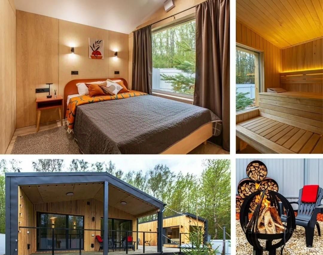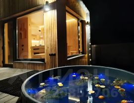 - У нас есть баня с панорамным окном и живописным видом на лес и купелью (фурако с дровяной печкой и подсветкой), зона мангала с навесом и стильная костровая зона.