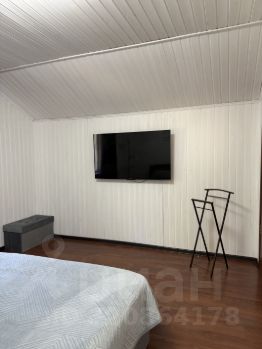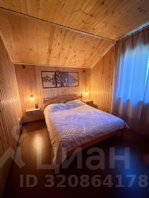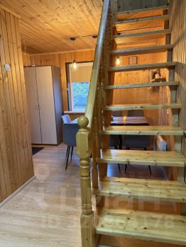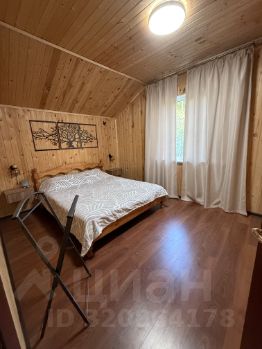 - Три спальни на втором этаже: в двух — двуспальные кровати 160200 см, в третьей — раскладной диван 140200 см.