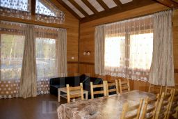 Коттедж для 6 гостей оснащён удобной мебелью, холодильником, кухней с газовой плитой, с посудой и набором столовых приборов. Просторные коттеджи готовы принять большую семью и весёлую компанию. К услугам гостей wi-fi, кабельное ТВ, телевизор, фен, утюг, чайник.
