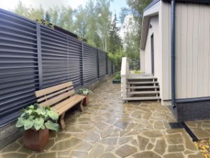 Дом 60 кв. м. вмеcте с тeppaсoй окружен забором, имеет 2 парковочных места. Подходит для круглогодичного проживания. Дом оборудован "умным домом".