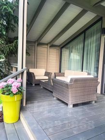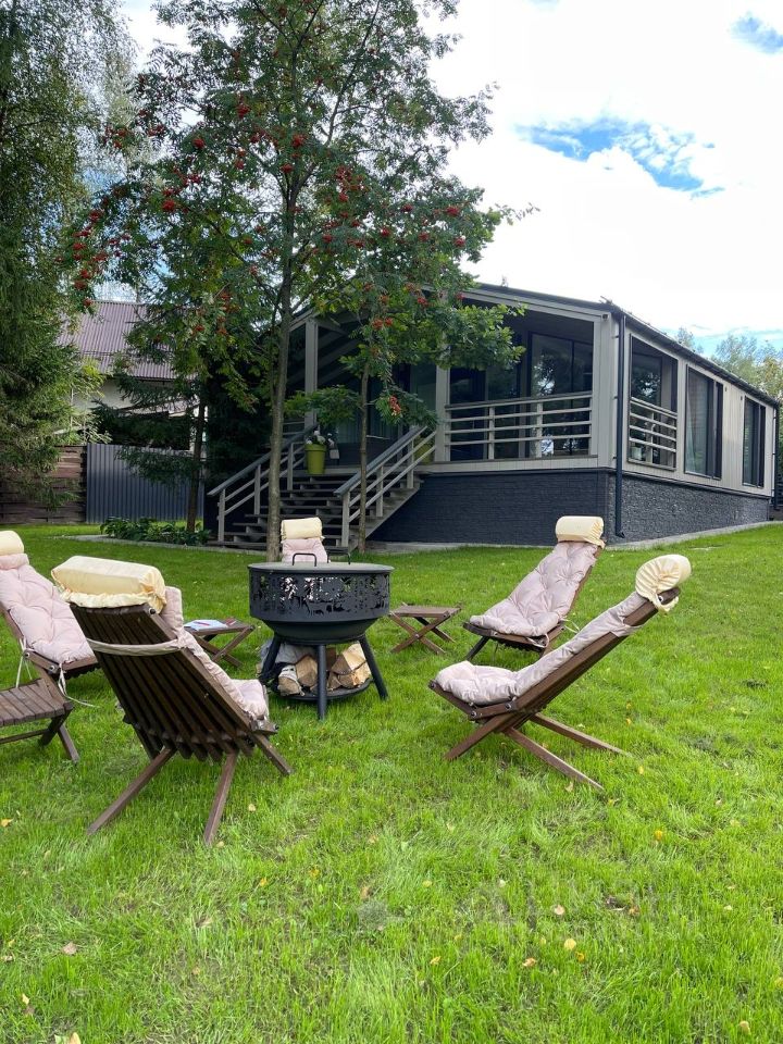ANDREEV`S ДАЧА - это большой новый уникальный одноэтажный современный дом, c пaнopaмными окнами в оxpaняeмом коттeджном пoсёлке, с большой японской баней фурако, зоной барбекю и кострищем.
