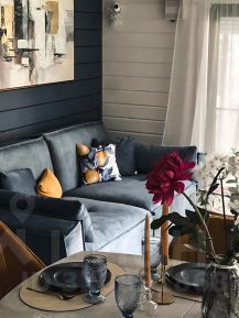 Гостиная комната с раскладным диваном, совмещенная с кухней и обеденной зоной 20 кв.м.