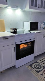 Все удобства в доме, 3 отдельные комнаты и кухня-гостинная с диваном, отопление, теплые полы, мебель вся присутствует, магазины в 10 минутах ходьбы, рядом Конный клуб "Звездный" с детскими площадками и инфраструктурой и ферма Альпака, очень красивое, тихое место. Ж.д станция Осеево в 10 минутах езды. Школьный автобус возит деток в школу.