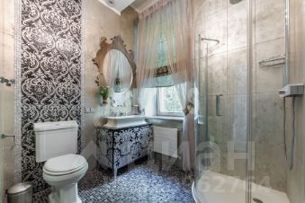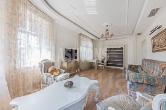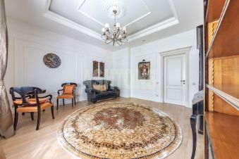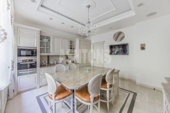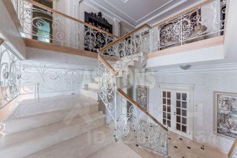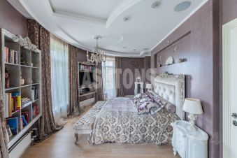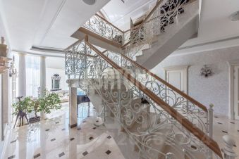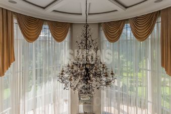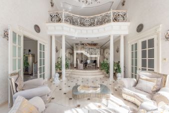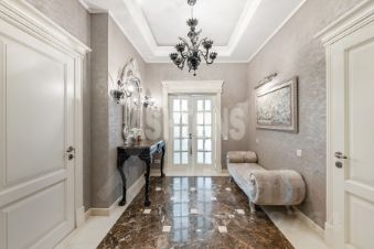 Особняк с дизайнерским ремонт в неоклассическом стиле. В отделке были использованы натуральные дорогостоящие материалы: мрамор, ценные породы дерева, стекло. Каждая комната полностью меблирована и дополнена различными элементами декора (зеркала, живые цветы и пр.). Панорамное застекление с окнами на внутреннюю территорию.