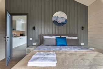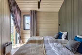 Одна спальня с двуспальной кроватью 160200, вторая спальня с двумя односпальными кроватями, которые с лёгкостью трансформируются в двуспальную, третья спальня с удобным диванчиком 160200.