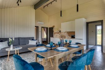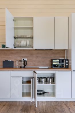 В зоне гостиной есть обеденный стол и вся необходимая посуда, холодильник, микроволновая печь, варочная панель, духовой шкаф, посудомойка, чайник и диван.