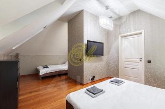 В доме 5 спальных комнат с размещением на ночь до 18 человек, 4 санузла. На банкет до 25 человек.