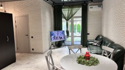 - Большая гостиная-столовая, совмещенная с кухней, с выходом на веранду и участок