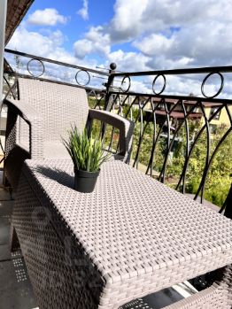 - Просторная веранда для отдыха с выходом на участок, огороженный высокими туями. В жару, лёжа на шезлонгах, Вы можете приготовить любой коктейль с кубиками льда с холодильником Samsung