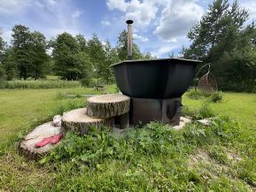 На территории имеется: Мангальная зона, костровая зона, большой батут надувной для детей, бадминтон, волейбол. ( Зиплайн в процессе установки) ( Теннисный стол в процессе доставки).