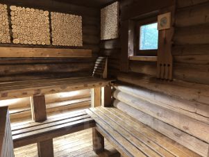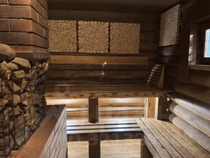 Для ценителей здорового отдыха на территории расположена 2-х этажная русская баня на дровах из той же сибирской сосны, где можно отлично выпарится, окунутся в холодный бассейн, в большой гостиной насладится чаем после бани, и поиграть в русский бильярд. Второй ярус банного комплекса занимает японская баня Фурако диаметром 3 м.