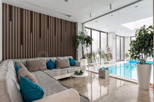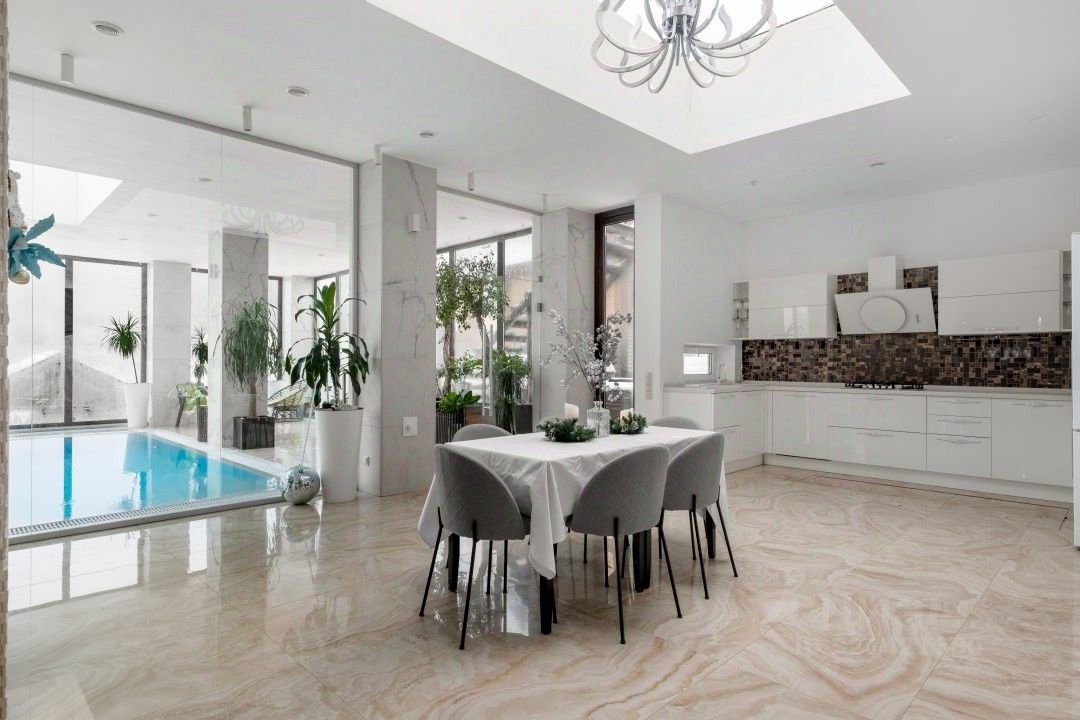 Коттедж в 480 кв.м подходит для тихого семейного отдыха, деловых встреч, медитации и йоги.