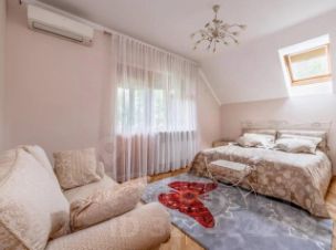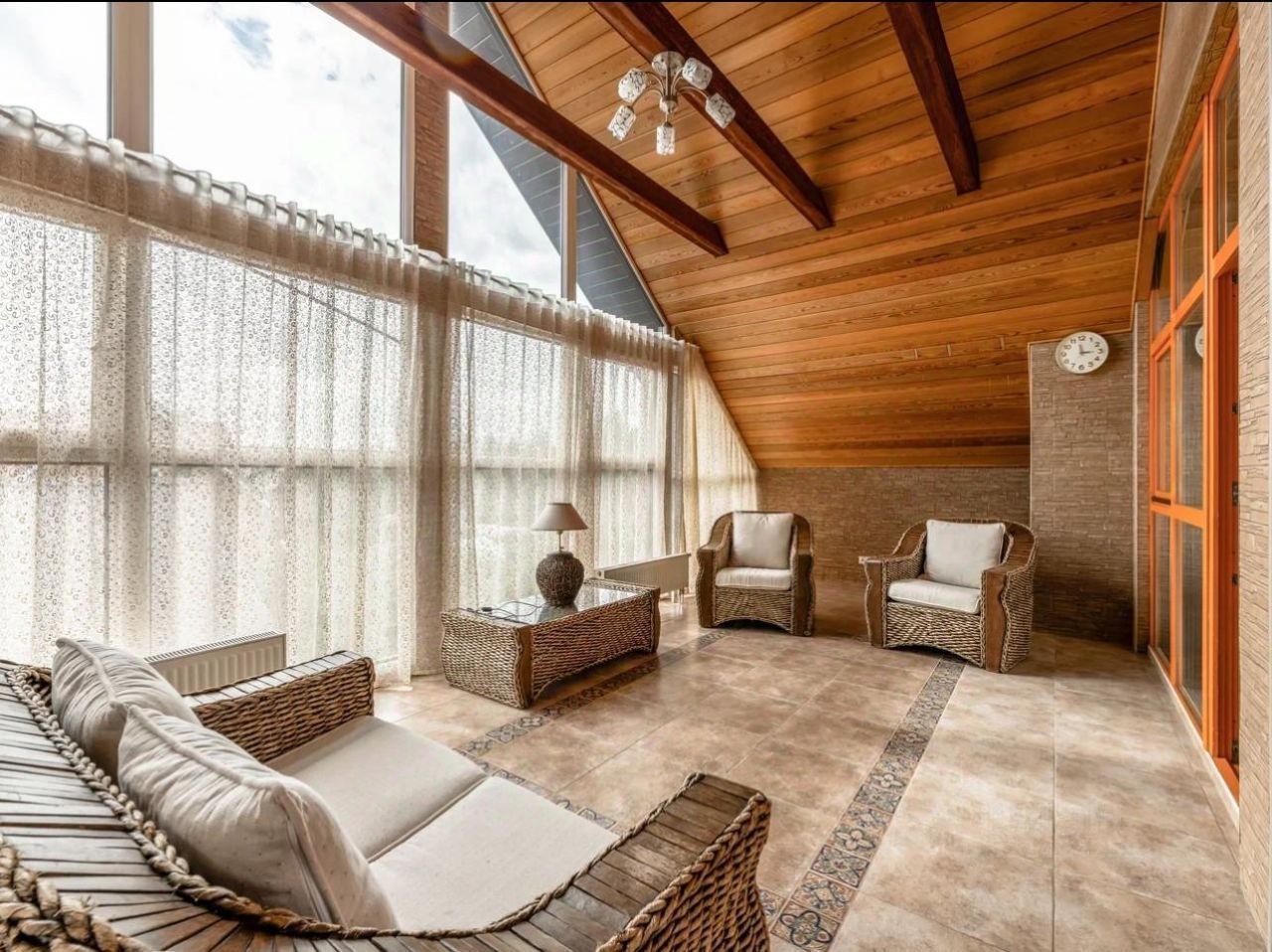 Внутреннее пространство дома продумано до мелочей: высокие потолки, большие окна, которые наполняют комнаты естественным светом, и стильный интерьер, который сочетает в себе современные тенденции и классические элементы.