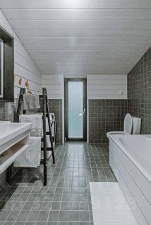 Натуральные и экологичные материалы. Снаружи дом отделан деревом и профлистом цвета серый графит. Внутренняя отделка также массив дерева.