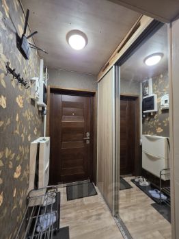 1 этаж: Прихожая: большой шкаф купе с зеркалом, обувница, вешалка для верхней одежды.