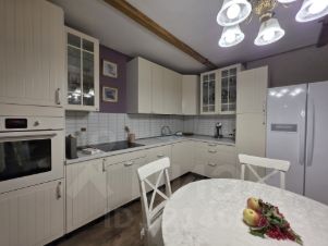 Кухня-гостиная 26м2: встроенный кухонный гарнитур, вмтроенная варочная панель стеклокерамика, встроенный духовой шкаф, встроенная посудомоечная машина. Круглый обеденный стол, стулья. Большой холодильник с распашными дверями.