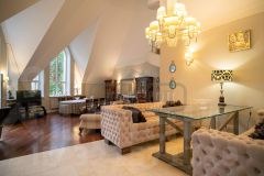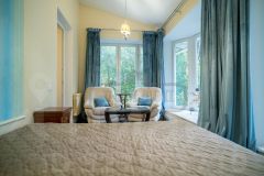 В ДОМЕ: 6 спален (3 изолированных), 3 санузла, 12 спальных мест, +3 спальни в гостевом доме (предоставляются по запросу за доплату). Гостиная 100 кв.м. до 28 персон. Каминный зал. Полностью оборудованная кухня с 2 холодильниками, посудомоечной машиной и всей необходимой посудой.