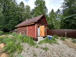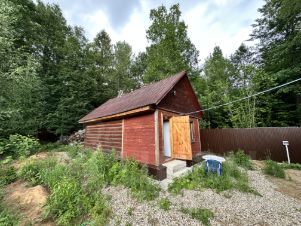 Участок огорожен забором, на участке есть баня и стоянка для машин.
