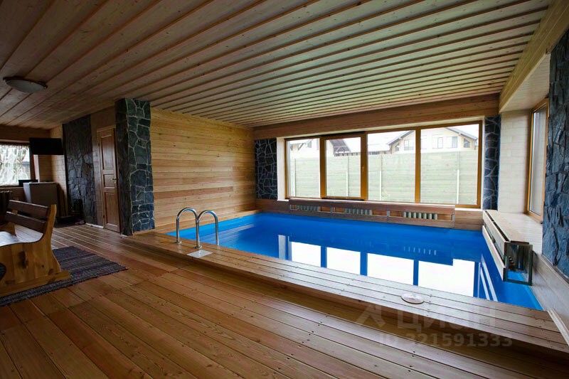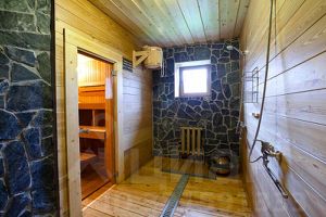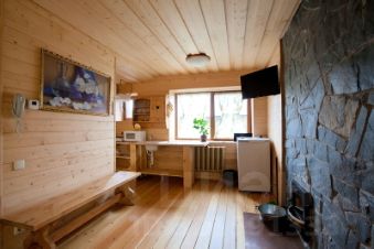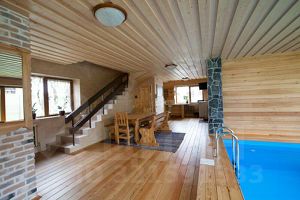 На первом этаже первого здания находятся русская баня на дровах, бассейн, кухня, обеденный стол, телевизор, музыкальный центр, санузел. На втором этаже бильярд, телевизор, DVD караоке, три спальни, два санузла с ванной.