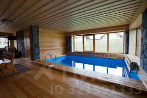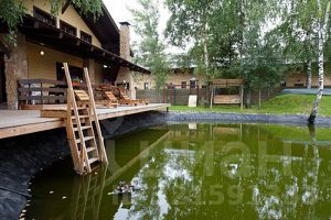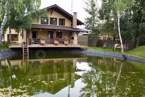 На территории коттеджа расположены два двухэтажных здания, пруд, детская площадка.