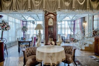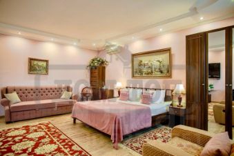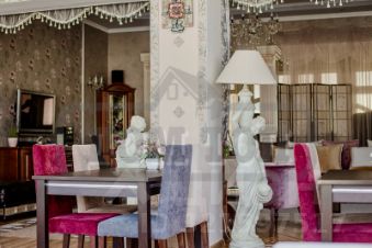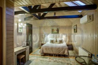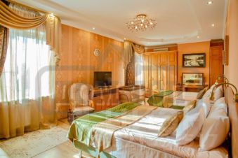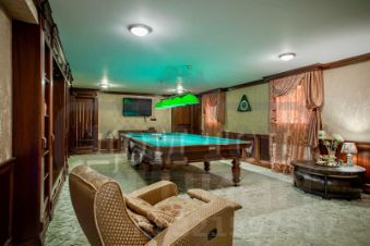 В ДОМЕ: 3 этажа, 9 спален, 25 спальных мест. Просторная гостиная - банкетный зал на 35 персон с панорамным остеклением. Кинозал. Каминный зал. На цокольном этаже сауна, конференц-зал на 30 мест. Спортзал, теннисный стол. Холл с рабочим кабинетом. Детская игровая.