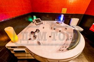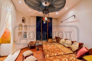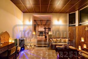 В ДОМЕ: 3 этажа, 5 спален, до 12 спальных мест. Гостевой зал на 40 персон. Комната бильярда, спортзал. На втором этаже несколько балконов террас с мебелью. Комнаты оборудованы кондиционерами. Кухня столовая с необходимой посудой и техникой. Каминный зал с телевизором. Кальянная комната с панорамным остеклением.