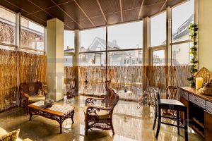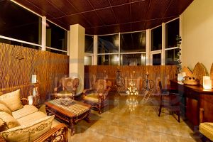 СПА-зона: комната отдыха с диванчиками, сауна, джакузи