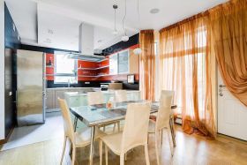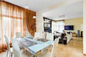 1 этаж: холл, гостиная, кухня, столовая, гостиная с камином и выходом на летнюю террасу и участок.