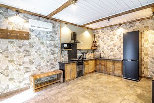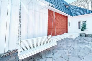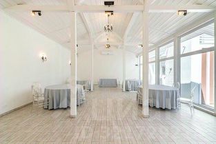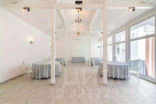 Белая веранда с панорамными окнами площадью 100 м² вмещает до 60 гостей и оборудована кондиционером, что создаст комфортные условия в любое время года. Дом отапливается и рассчитан на круглогодичное использование.