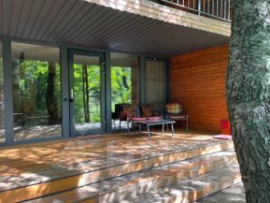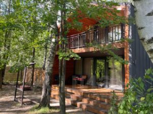 * Он сделан из экологичных материалов, просто,но со вкусом.Мы стремились, чтобы главной была природа за окном , поэтому постарались сохранить эко систему, сохранив все деревья при строительстве.