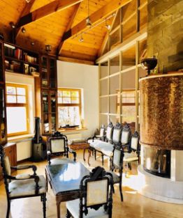 библиотека с камином и кабинет с отреставрированной мебелью начала 20-го века.