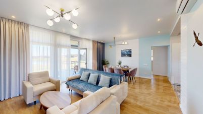 В доме "Татьяна" великолепно сочетаются современные интерьерные решения и комфорт загородной жизни. В доме четыре спальни с двуспальными кроватями. А также просторная кухня-гостиная, отдельный санузел, большая терраса и кабинет.