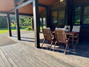 Дoм из оцилиндрованного бруса полностью оснащен всем необходимым для проживания, в нем также есть дровяная баня.