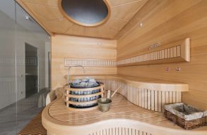 Гостевой дом: 2 кухни, 2 спальни, гостиная, кабинет, сауна, хамам, гидромассажная ванна, ванные комнаты.