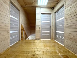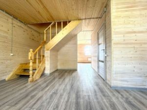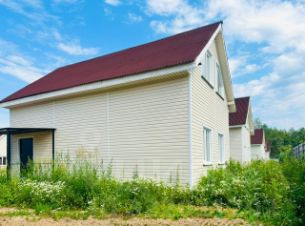 Двухэтажный дом, фундамент — армированная монолитная железобетонная плита, общей площадью 100 м2, участок 4,1 соток.