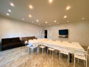 Большая кухня-гостиная станет отличным местом для сборов и за столом может разместиться до 25 гостей. На кухне вы найдёте все необходимые бытовые приборы: микроволновка Samsung, сенсорная плита Bosh, холодильник Bosh и посудомоечная машина Neff. Для готовки и сервировки предоставляется необходимая посуда.