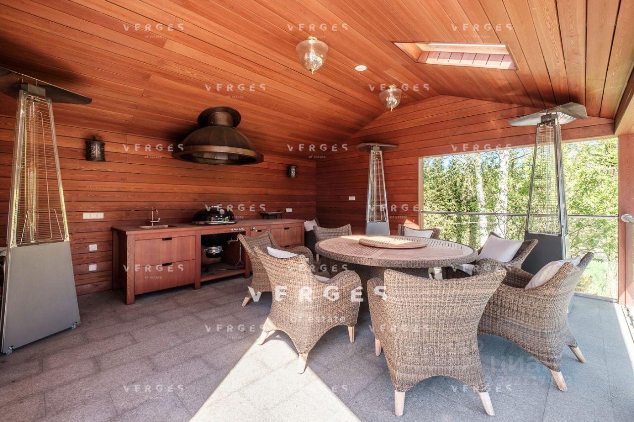 Рядом с основным домом расположен гостевой дом площадью 185 м2 с профессиональной спа-зоной. Здесь предусмотрена дровяная баня, купель, горячий чан и зона отдыха с шезлонгами. Кроме этого, есть гостиная с большим диваном и телевизором, кухней, большой крытой верандой и барбекю-зоной.