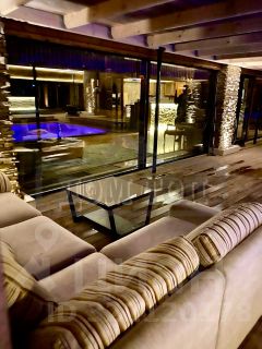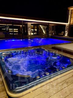 СПА-зона: сауна; большой бассейн, разделённый стеклянной перегородкой, с подныром из зоны сауны на улицу; джакузи.