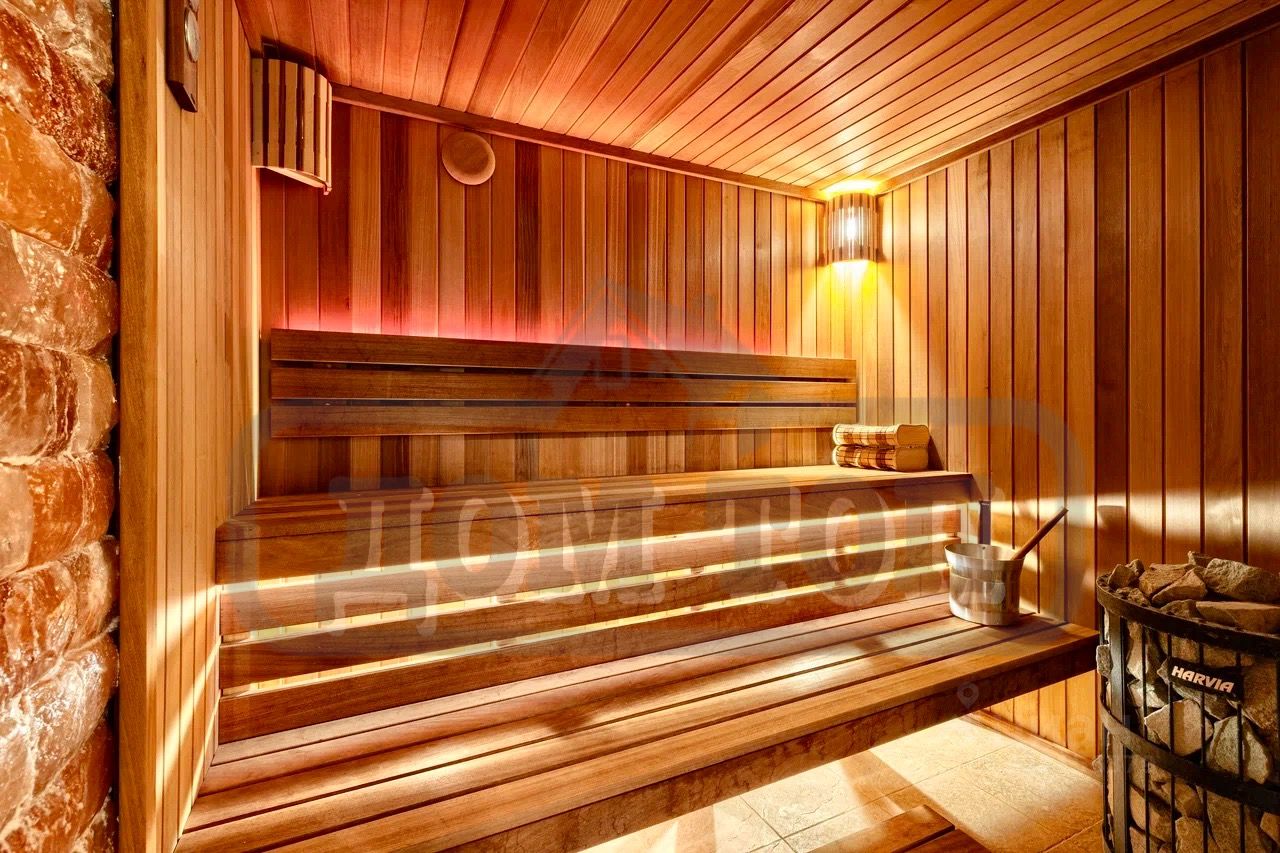 СПА-зона: бассейн с регулируемой температурой, парная из канадского кедра и солевой стены, душевая, зона отдыха, санузел. Спортзал с тренажерами и теннисным столом.