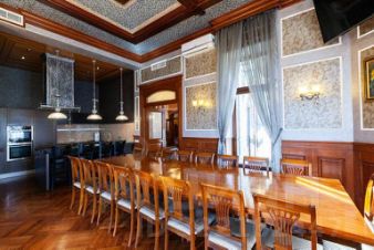 Наш коттедж — это великолепное пространство для любых торжеств. Его продуманный дизайн и стильная мебель создают неповторимую атмосферу респектабельности и теплоты. Просторные банкетные зоны позволят удобно разместить всех гостей, а современная профессиональная кухня обеспечит безупречное приготовление блюд, отвечающих любым требованиям. Здесь есть все для того, чтобы ваше мероприятие прошло идеально — от организации и декора до качественного обслуживания.