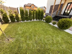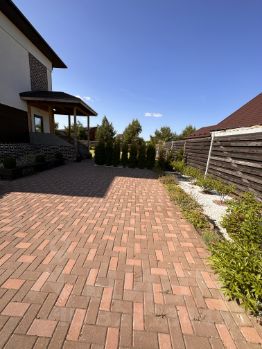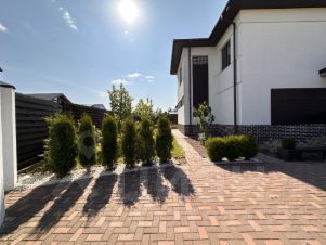 - въездная группа с ландшафтным дизайном, высажены туи и декоративные кустарники,