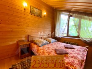Коттедж состоит из двух 2-х этажных деревянных строений общей площадью 400 кв.м. Московская область, Истринский район, д. Крючково, Новорижское шоссе, 38 км от МКАД. Комфортное размещение 14 человек, максимальное до 18 человек. На первом этаже первого здания находятся русская баня на дровах, бассейн 3*5, кухня, обеденный стол, телевизор, музыкальный центр, санузел. На втором этаже бильярд, телевизор, DVD, три спальни, два санузла с ванной. На первом этаже второго здания находятся гостиная с камином, кухня, телевизор, музыкальный центр, мягкие кресла, угловой диван, обеденный стол, санузел, ванная, на веранде барбекю. На втором этаже четыре спальни, два санузла. На участке расположены пруд, детская площадка, парковка для автомобилей. В стоимость размещения входит безлимитное использование бани и бассейна в доме, чистая постельное белье и посуда, пользование полем для мини-футбола и волейбола. СТОИМОСТЬ АРЕНДЫ: Будни от 29 000 р сутки Выходные полные на 2 суток 81 000р на 2 суток