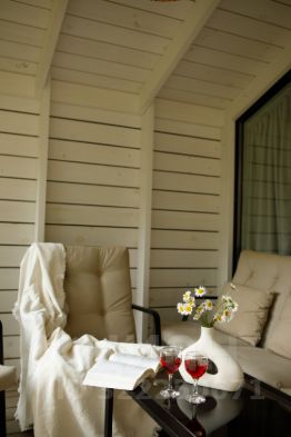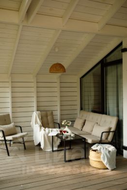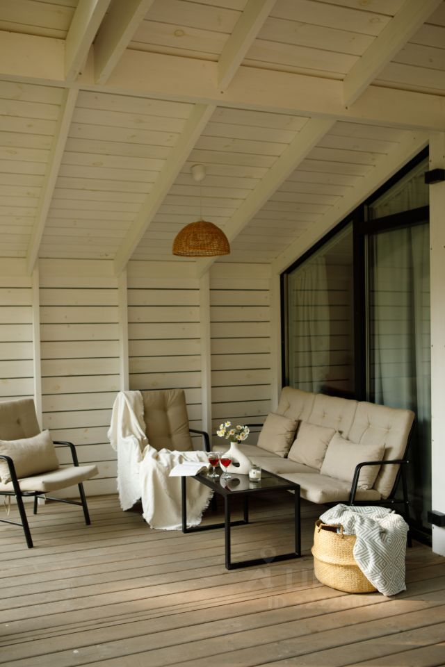 -Веранда с садовой мебелью, пледами для отдыха на свежем воздухе