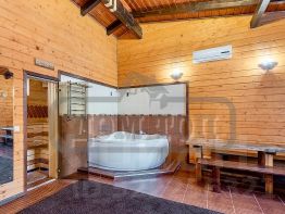 БАНЯ: отдельно стоящая русская баня на дровах. Комната отдыха, шезлонги, джакузи, бильярдная, телевизор, DJ-пульт.
