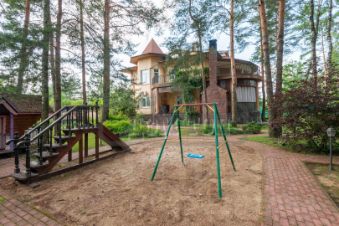 На цокольном этаже: большая гостиная с бильярдом (русский, 8ф), барная стойка, с/у, лаундж-зона с диванчиками. На 2-м и 3-м этажах спальни. Есть спальня для молодоженов с джакузи.