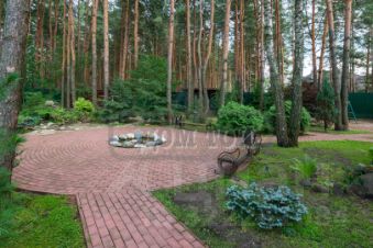 УЧАСТОК: 25 соток. Ухоженная зеленая придомовая территория. Ландшафтный дизайн. Растут хвойные и лиственные деревья. Высажены цветы. По всему участку вымощены дорожки. Лобное место с очагом, по периметру установлены скамейки. Детская площадка: качели, песочница, горка, сказочный домик. Веранда с мангалом. Скамейка с навесом козырьком. Парковка на 8 автомобилей. Арка для выездных регистраций.