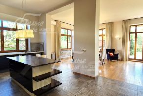 Мебель: в столовой обеденная группа на 6 персон, в гостиной новый мягкий гарнитур, в спальнях современные двуспальные кровати, тумбы, комоды, журнальные столики, гардеробные оборудованы системами хранения. Межкомнатные двери производства Италия. В прихожей настенное зеркало от немецкого бренда Rolf Benz, эксклюзивное напольное зеркало Ravel (Италия). В главной спальне люстра и бра ручной работы. В гостиной люстра от бренда "Русский модерн", светильники Flos Италия..