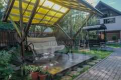 УЧАСТОК: 5 соток. Ухоженная зеленая придомовая территория. Качели и шезлонги. Мангальная зона со скамейками. Веранда. Парковка на 4-5 автомобилей