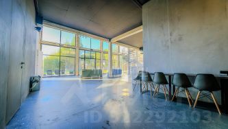 Просторная гостиная с высокими потолками (7 метров) и панорамными окнами.